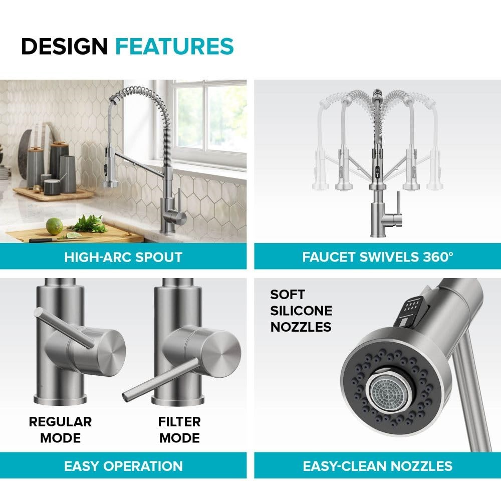 2-IN-1 WATER FILTER FAUCET: Kitchen faucet with integrated water filter tap provides easy access to filtered water for drinking, cooking, or filling water bottles and ice trays – No need for a separate filter faucet