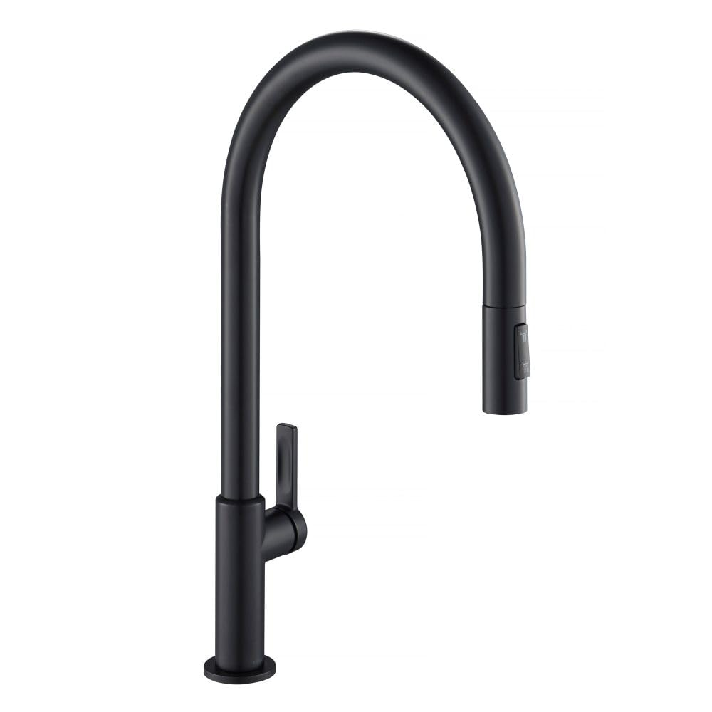HIGH-ARC SPOUT with impressive extra-tall design offers more room for oversized items – REACH TECHNOLOGY provides the ability to flex, pivot, and reach all around the sink with an easy-retract hose and swivel adapter – Designed for easy operation, COMFORT-GRIP HANDLE operates with 90-degree forward rotation for installation in tighter spaces