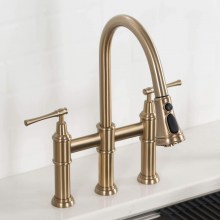 Brushed Gold Bridge Faucet Pull-Down Sprayhead