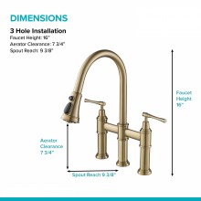 BRIDGE FAUCET DESIGN: Horizontal bar connects hot and cold water handles to the faucet spout for a bold classically-inspired look – PULL-DOWN SPRAYHEAD provides flexibility for up-close tasks and extended reach all around the sink; eliminates the need for a separate side-sprayer