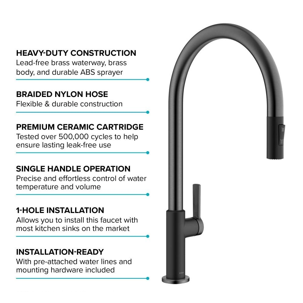 UNIVERSAL DESIGN: The contemporary Faucet features a sleek modern look with universal appeal that will elevate the style of any kitchen – Impressively TALL HIGH-ARC SPOUT creates an instant focal point that makes it an ideal statement piece for kitchen islands – FAUCET HEIGHT: 20 3/8 in. – SPOUT REACH: 10 7/8 in. – SWIVELS 360 degrees for a broad range of motion – Flow Rate 1.8 gpm