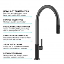 HEAVY-DUTY CONSTRUCTION with brass body and durable braided nylon water supply lines helps ensure reliable performance – PULL-DOWN SPRAYHEAD with Reach Technology offers maximum maneuverability – EASY-RETRACT HOSE with swivel adapter enables a full range of motion so you can flex, pivot, and reach around the sink – Wear-resistant TWO-TONE FINISH creates striking contrast – Not prone to corrosion, fading, or tarnishing over time – Also available in Spot Free finish options for easy maintenance