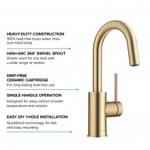 HEAVY-DUTY CONSTRUCTION with lead-free brass water lines, metal body, and premium components for long-lasting leak-free use - SINGLE HOLE INSTALLATION allows you to install this faucet with any bar or kitchen sink on the market - FAUCET MOUNTS SECURELY onto any sink deck, including thicker materials like granite and quartz