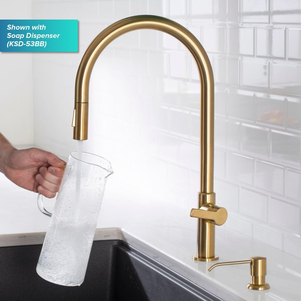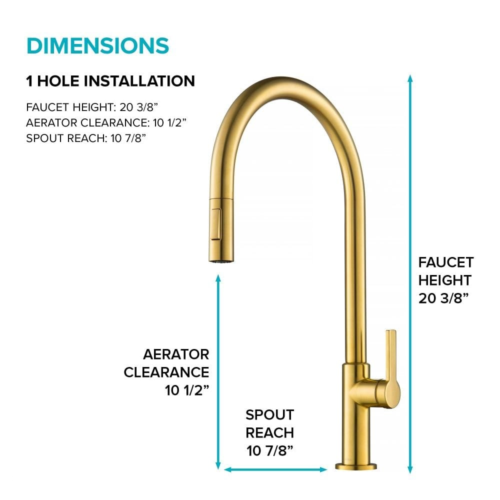 UNIVERSAL DESIGN: The elegant and ergonomic faucet creates an instant focal point in any kitchen or laundry room – FLAWLESS CORROSION-RESISTANT FINISH will not fade or tarnish over time – Available in SPOT FREE all-Brite Stainless Steel or Antique Champagne Bronze to prevent water spots and fingerprints – FAUCET HEIGHT: 20 3/8 in. – SPOUT REACH: 10 7/8 in. – Swivels 360 degrees for a full range of motion – Flow Rate 1.8 gpm