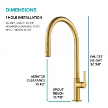 UNIVERSAL DESIGN: The elegant and ergonomic faucet creates an instant focal point in any kitchen or laundry room – FLAWLESS CORROSION-RESISTANT FINISH will not fade or tarnish over time – Available in SPOT FREE all-Brite Stainless Steel or Antique Champagne Bronze to prevent water spots and fingerprints – FAUCET HEIGHT: 20 3/8 in. – SPOUT REACH: 10 7/8 in. – Swivels 360 degrees for a full range of motion – Flow Rate 1.8 gpm