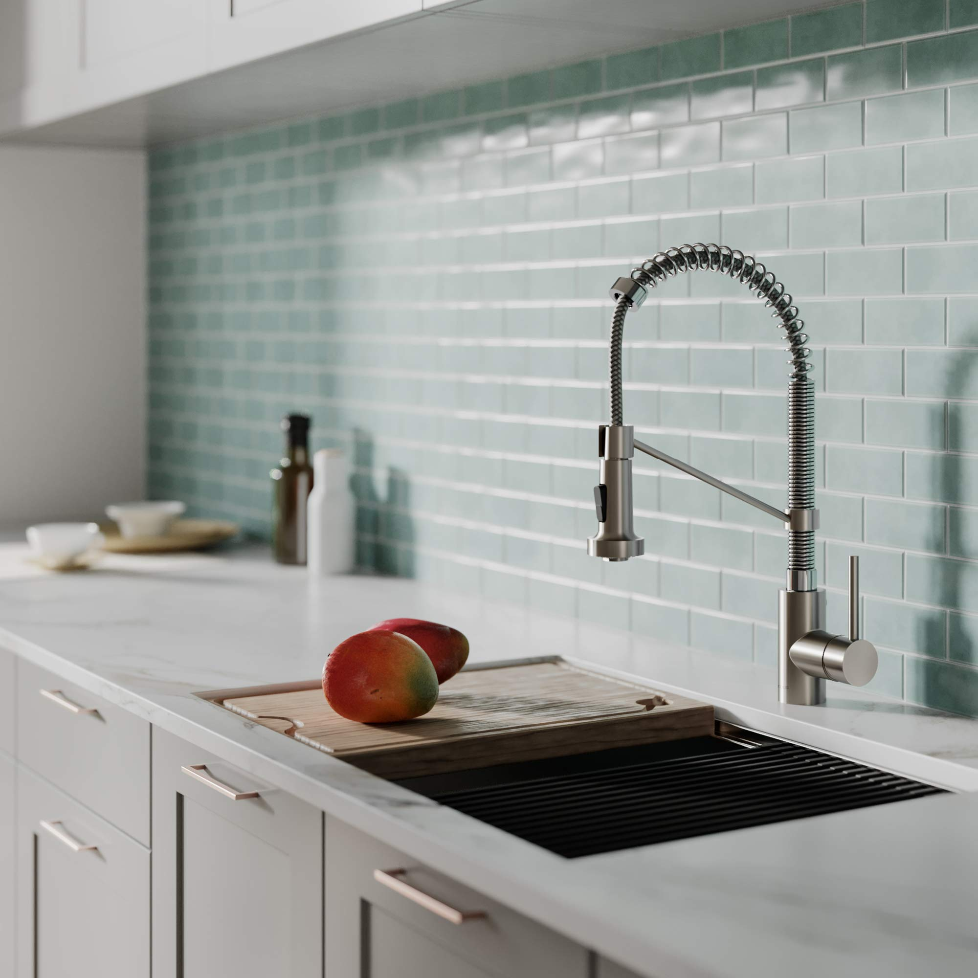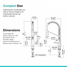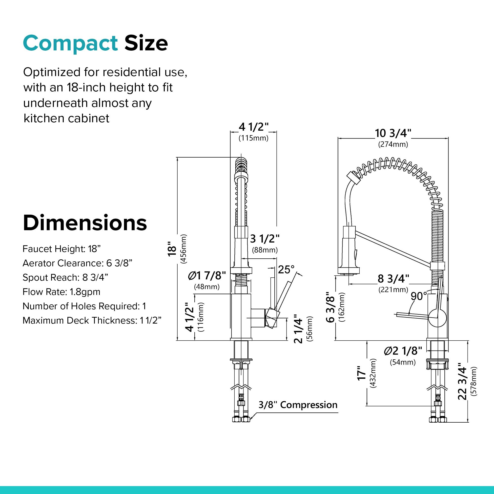 COMMERCIAL FAUCET DESIGN: Kitchen sink faucet with high-arc open-coil spring spout creates a professional modern look, and is sized to fit in any kitchen or laundry room with optimized 18 3/4” height